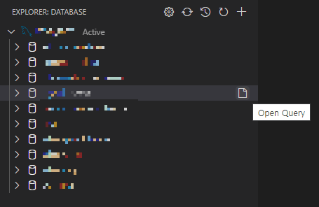 6. 해당 데이터베이스 옆 파일 모양을 눌러 open query 선택하여 쿼리 창을 생성