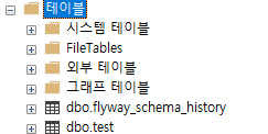 테이블이 생성되어 있는 것을 확인 할 수 있다.
