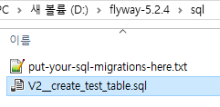 1) flyway가 들어있는 폴더에 데이터베이스명으로 폴더 생성